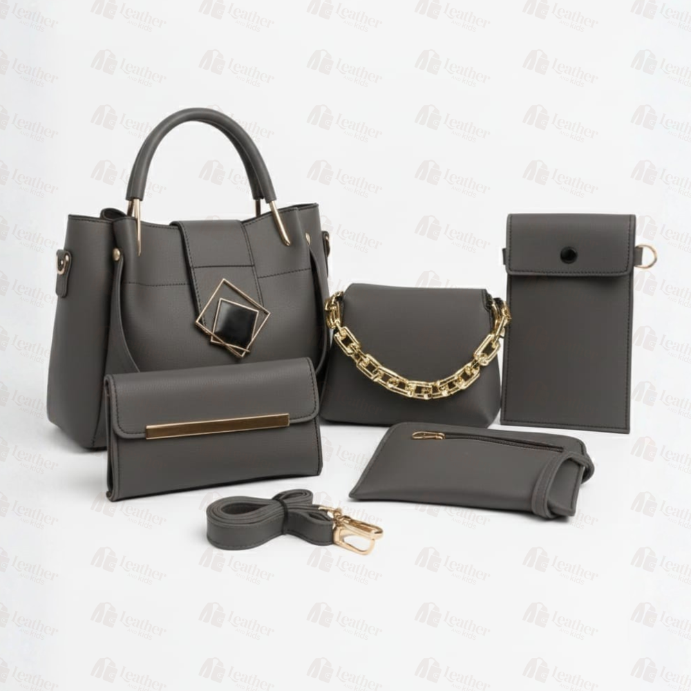 This 5 Piece Ladies Handbag Set with Wallet & Crossbody Bag includes multiple leather accessories for daily essentials organization.