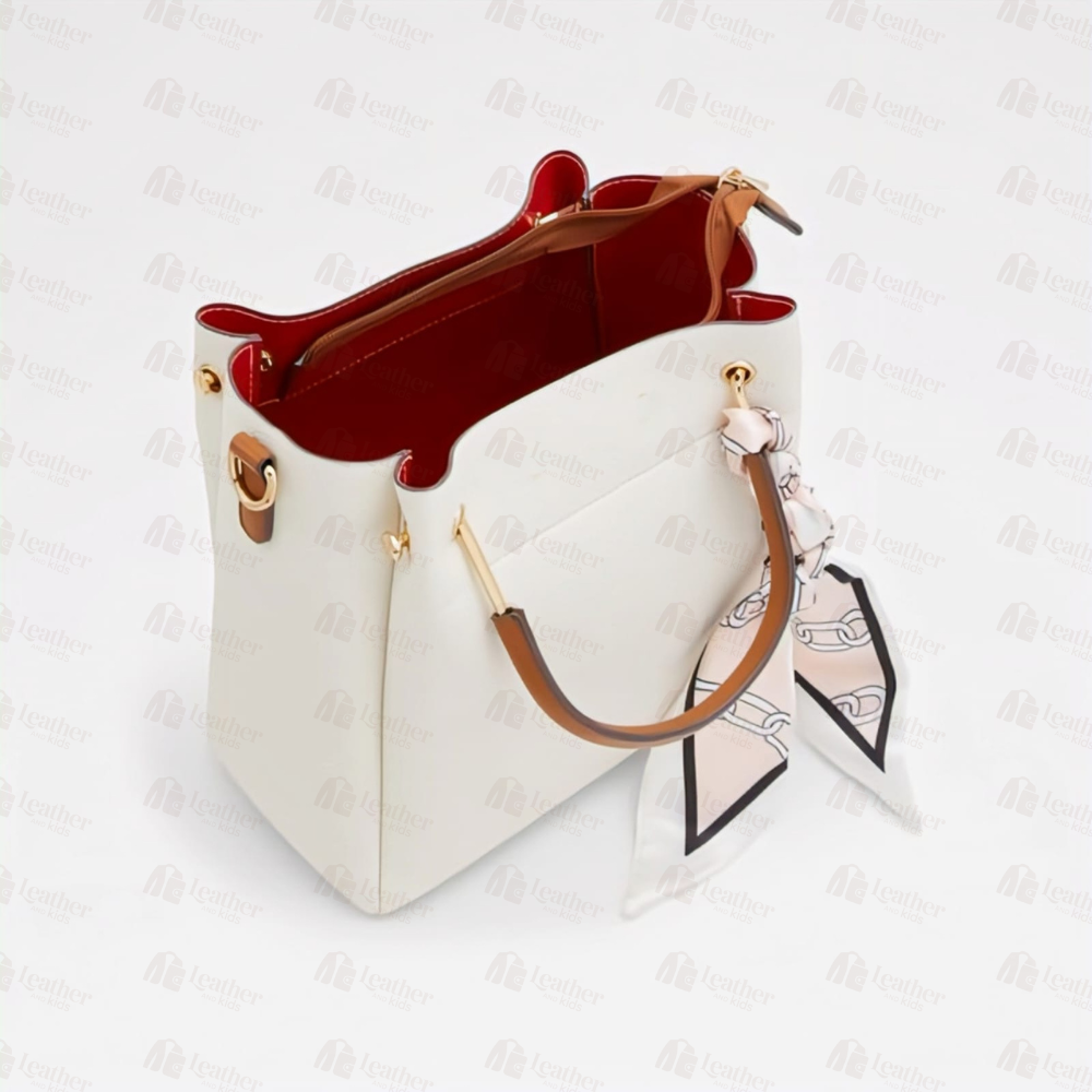 The Handbag with Shoulder Strap & Silk Scarf is used by mothers. It is used for daily trips. The bag is used to carry baby items. The items include diapers and toys. The bag is used to carry bottles. The technique is simple. The bag is easy to use.